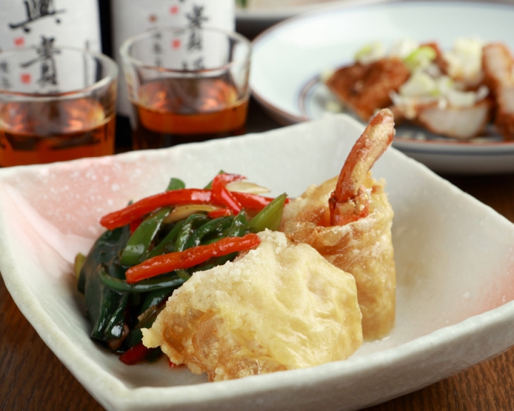 ・小龍包・えび餃子・レンコンはさみあげ・鶏唐揚げ柚子油淋ソース イカの唐揚げ柚子油淋ソース ふぐの唐揚げ カキの中華てんぷらより2品