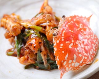 ズワイガニとエビすり身湯葉巻き九条ネギあんかけ